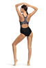 Biust jest dobrze podtrzymany dzięki usztywniającym miską. Z tyłu ramiączka układają się w x, pod linią łopatek jest odważne wycięcie pleców.