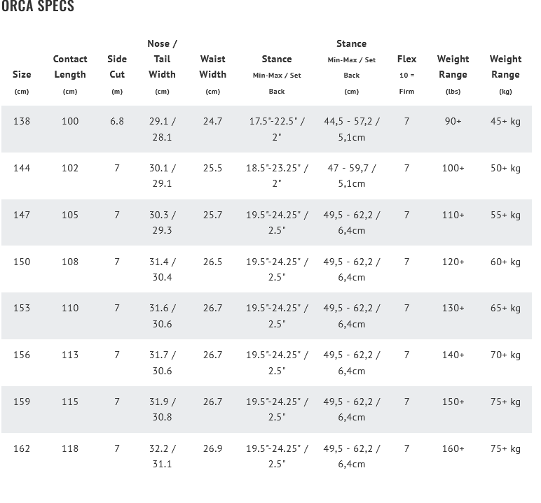T.Rice Orca Travis Rice i jego dziecko w którym rdzeń deski jest wykonany technologii Horsepower - bardzo lekki i responsywny. Krótka krawędź efektywna, mocny side cut i pop dają tej desce właściwości niespotykane w żadnym innym snowboardzie. Travis twierdzi ,że tą deskę bierzesz o 3-6 cm krótszą a i tak wszędzie będzie zostawiała konkurencję w tyle.