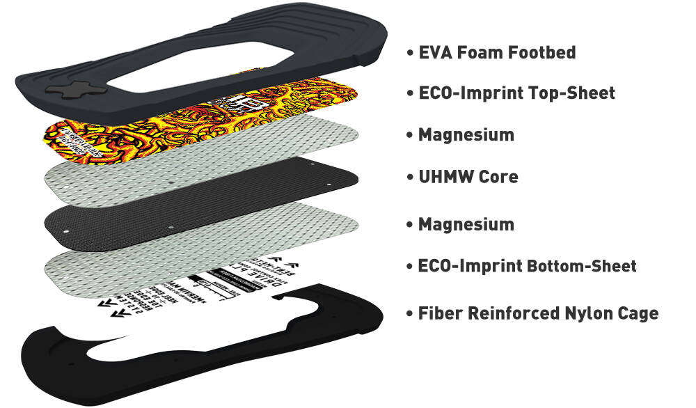 - Drive Plate Flex Control System to rewolucyjny system decydujący o sztywności całej płyty wiązania. Każde wiązanie jest wyposażone w specjalną wkładkę wyprodukowaną w Mervin Manufacturing w USA. Wkładki są wykonywane w tej samej technologii jak deski Lib Tech/Gnu i jak one składają się z paru warstw. Zamocowane w płycie wiązania wkładki umieszczone są na całej długości i szerokości wiązań pod butem. Dzięki temu wiązaniu można nadać precyzyjnie pożądane właściwości jeśli chodzi o jego pracę na desce. Dodatkowo istnieje możliwość dokupienia twardszej lub miększej wkładki w zależności od posiadanego modelu wiązania. Dzięki łatwej wymianie wkładek, możemy decydować czy w konkretnym dniu chcemy mniej lub bardziej responsywnego wiązania.