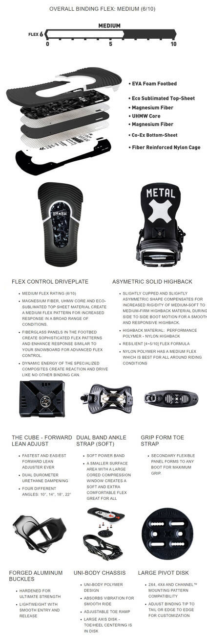 - Magnesium Drive Plate Flex Control System to rewolucyjny system decydujący o sztywności całej płyty wiązania. Każde wiązanie jest wyposażone w specjalną wkładkę wyprodukowaną w Mervin Manufacturing w USA. Wkładki są wykonywane w tej samej technologii jak deski Lib Tech/Gnu i jak one składają się z kilku warstw. W tym modelu dodatkowo zastosowano stop magnezu dla obniżenia wagi wiązania. Zamocowane w płycie wkładki umieszczone są na całej długości i szerokości wiązań pod butem. Dzięki temu można nadać precyzyjnie pożądane właściwości jeśli chodzi o jego pracę na desce. Dodatkowo istnieje możliwość dokupienia twardszej lub miększej wkładki w zależności od posiadanego modelu wiązania. Dzięki łatwej wymianie wkładek, możemy decydować czy w konkretnym dniu chcemy mniej lub bardziej responsywnego wiązania.