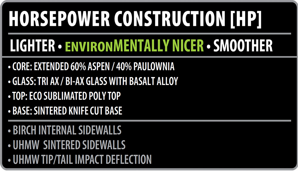 -     Aspen/Paulownia. W technologii Horse Power rdzeń deski składa się z 2 gatunków drzew, Aspen, Paulownia aby deska była bardzo lekka, sprężysta i wytrzymała.