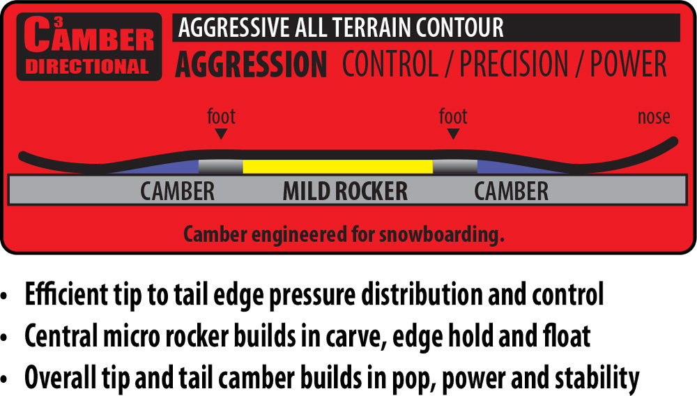 • Deska o kształcie directional i agresywnym profilu C3 (camber od Mervin) wraz z Magne Traction® i delikatnym taliowaniem idealnie odnajdzie się w każdych warunkach. Jest to sprzęt dla doświadczonych riderów, którzy potrzebują uniwersalnej deski, świetnie
