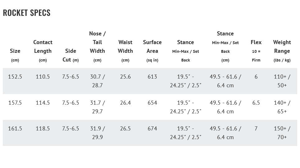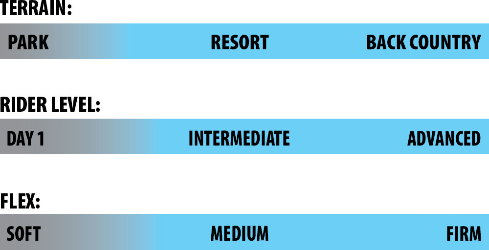 - Directional Carving Elliptical Sidecut, dłuższy nose deski wraz z odpowiednim taliowaniem, powodują że deska świetnie sprawdzi się w puchu oraz podczas jazdy na krawędzi.