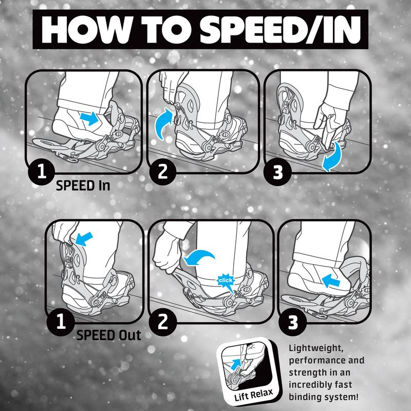Męskie wiązanie snowboardowe Gnu Cheeter z komfortowym,  szybkim i łatwym w obsłudze systemem wpinania. Bez problemu dopasujesz je do każdych butów snowboardowych. Wystarczy tylko raz dopasować je do buta snowboardowego i cieszyć się większą ilością czasu spędzoną na jeździe a nie na siedzeniu i wpinaniu się w wiązania. Wystarczy tylko jeden ruch łyżką by być wpiętym lub wypiętym z wiązań. Komfortowe bardzo lekkie strapy, które nie powodują ucisku, asymetryczny highback - układa się lepiej na łydkach i precyzyjniej przenosi siłę. Strapy w wiązaniach posiadają też pompki w celu precyzyjnego dopasowania do buta.