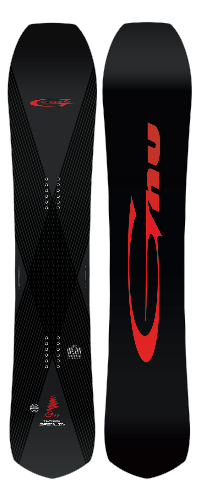 więcej potencjału... Przedstawiamy zwinną, smukłą, podrasowaną, wzmocnioną włóknem węglowym deskę do freeride'u w górach – Turbo Gremlin.
